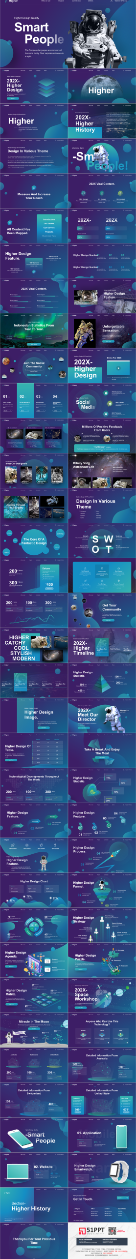 PowerPoint模板内容页,由66张蓝紫配色动态幻灯片图表,搭配PPT文字排版组成。另外使用了星球插图、宇航员插图等装饰。