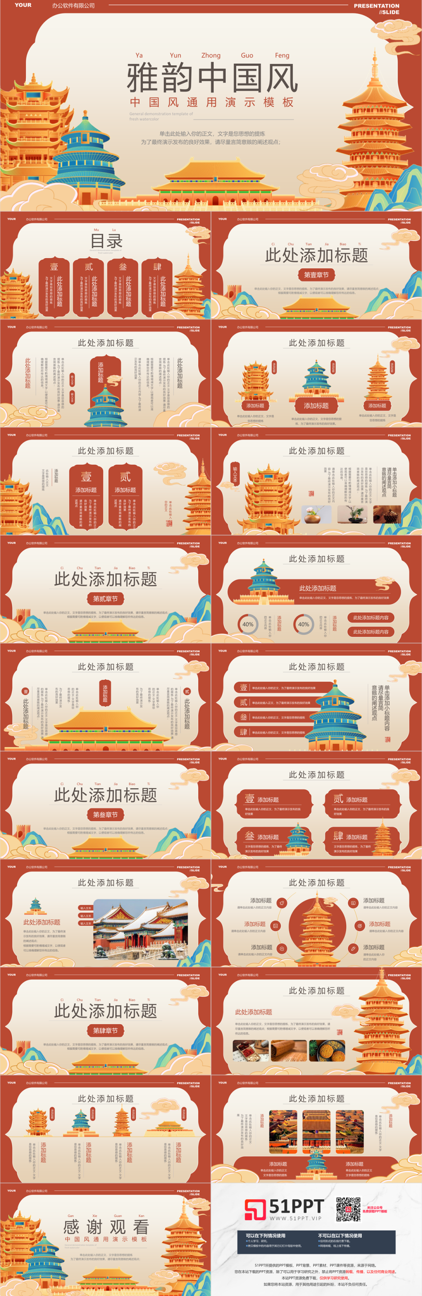 这是一套红色大气鎏金风商务汇报PPT模板,共18页;