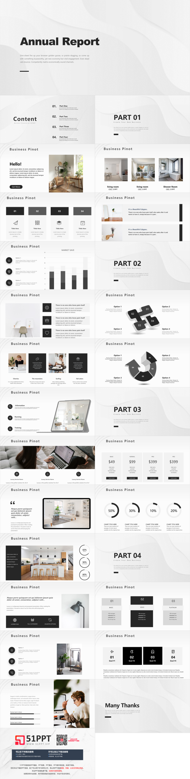 PowerPoint模板内容页,由25张灰色动态幻灯片图表,搭配PPT文字排版组成。另外使用了欧美商务人士插图、电脑屏幕插图等装饰。